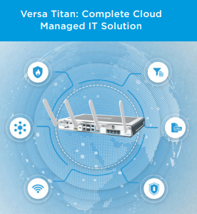 Versa Titan will assist you to help your client’s reduce cost, time, and complexity associated with WAN transformation, making it to deploy and manage their network edge, while easing the branch with fewer devices. Companies benefit from enhanced visibility and control of applications, bandwidth utilisation, network performance, and security vulnerabilities.