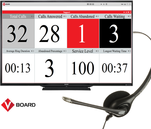 vBOARD is designed with a service level stat to ensure your call centre is meeting the expected performance levels, this allows monitoring of the ratio of calls that have been answered and abandoned and if the level you configure is exceeded, an alarm can be raised.